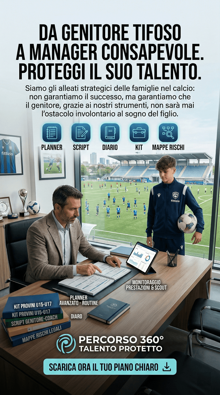 Opzione 2: Focus sul Problema (Perché serve) Poiché l'impreparazione dei genitori è spesso la causa principale del fallimento dei giovani talenti, offriamo una guida pratica per eliminare il metodo "a tentativi", gestire la pressione e navigare in sicurezza tra provini, contratti e dinamiche dei club.
